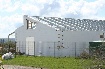 Progress on Valli the Temple Elephant’s barn was really quick. They built her new barn from hollow polystyrene bricks; they stack up on each other just like Lego, so they could build a whole wall in a day. They then pumped concrete into the bricks to make them strong. This system has been very successful, firstly because it is so quick to erect, and secondly because the polystyrene provides good insulation to keep Valli warm during the cold winter months.