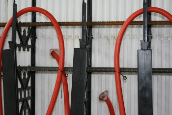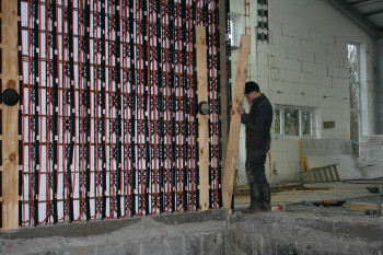The wall heating pipes were fitted with tiewraps to the steel frame work between the polystyrene blocks and framework.