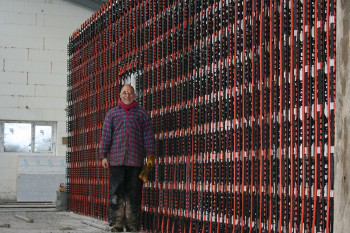 The wall heating pipes were fitted with tiewraps to the steel frame work between the polystyrene blocks and framework.The pipes took a few days to install, the completed pipe loops looked quite impressive.