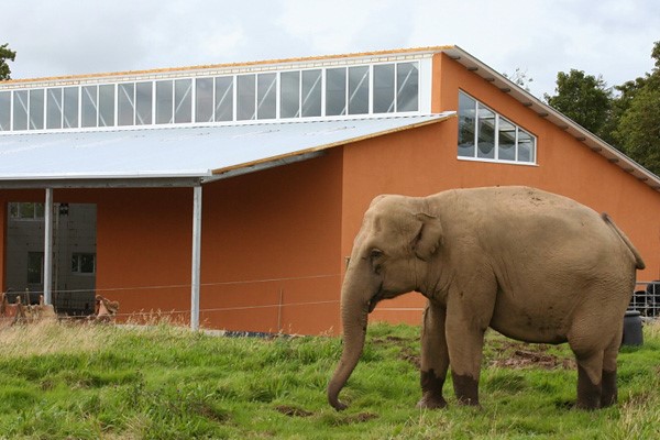 They finished the outside of the building within a few weeks. The next stage involves installing her in-wall heating system. Her sandpit, waterfall and knobbly tree trunks for back scratching are all in the pipeline!