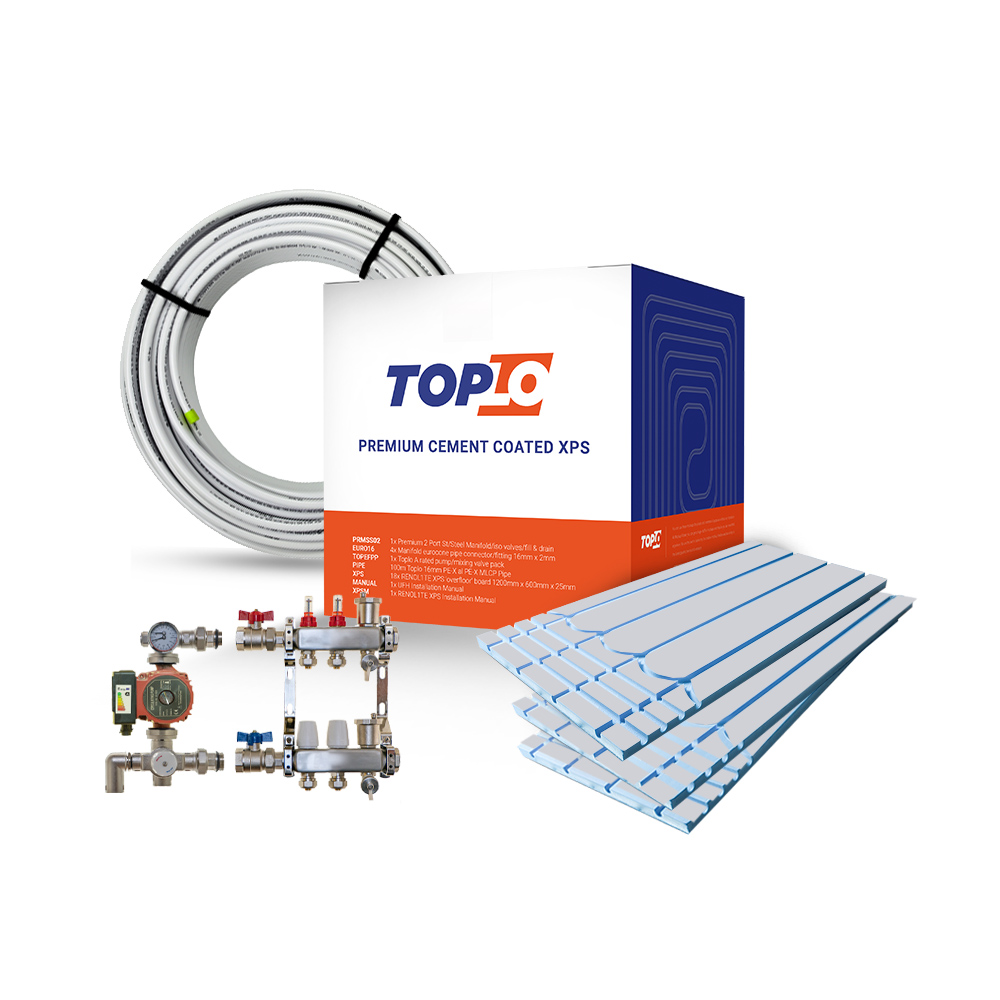 Our Premium Low Profile/Overfloor underfloor heating solutions are available in 25mm XPS boards or Cement Coated XPS boards.