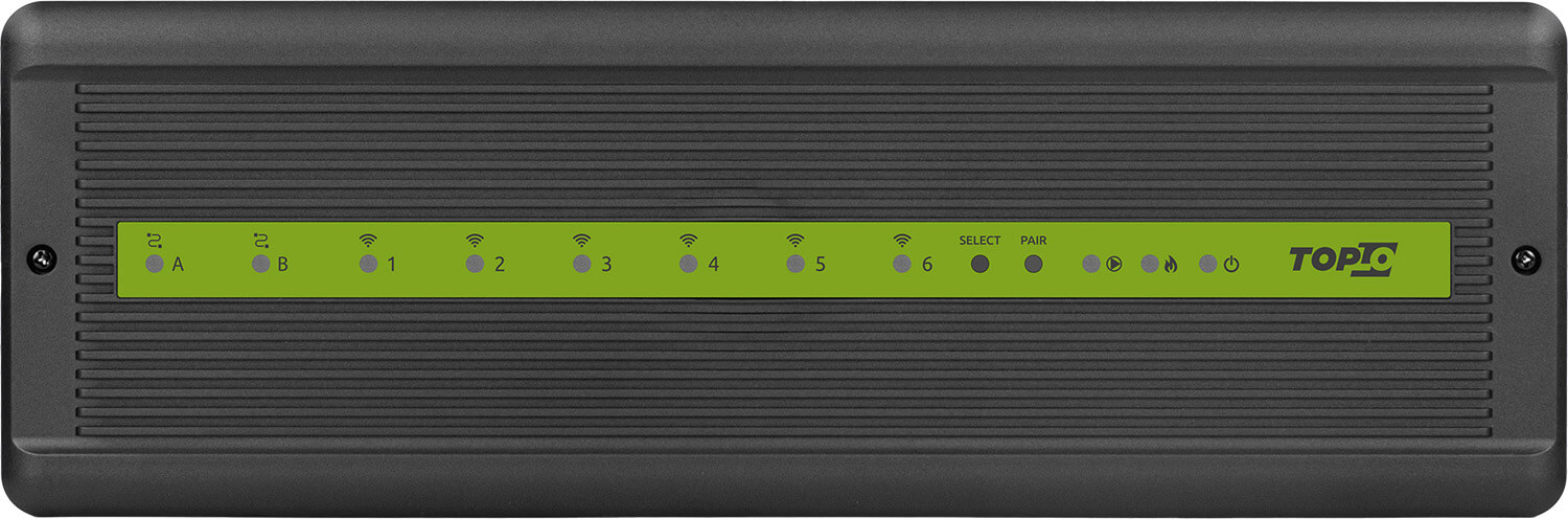 Send PlansThe control box has a built-in module for controlling a heating device, e.g. boiler, heat pump (voltage-free output). Wired control is performed by direct cable connection of thermostats to the control box. The thermostats can be battery operated (COM-NO contact) or powered by 230V AC. Wireless communication is performed in ZigBee 3.0 technology with dedicated temperature thermostats EONEBAT, EONE230 via TopLo Internet gateway (EGGW).