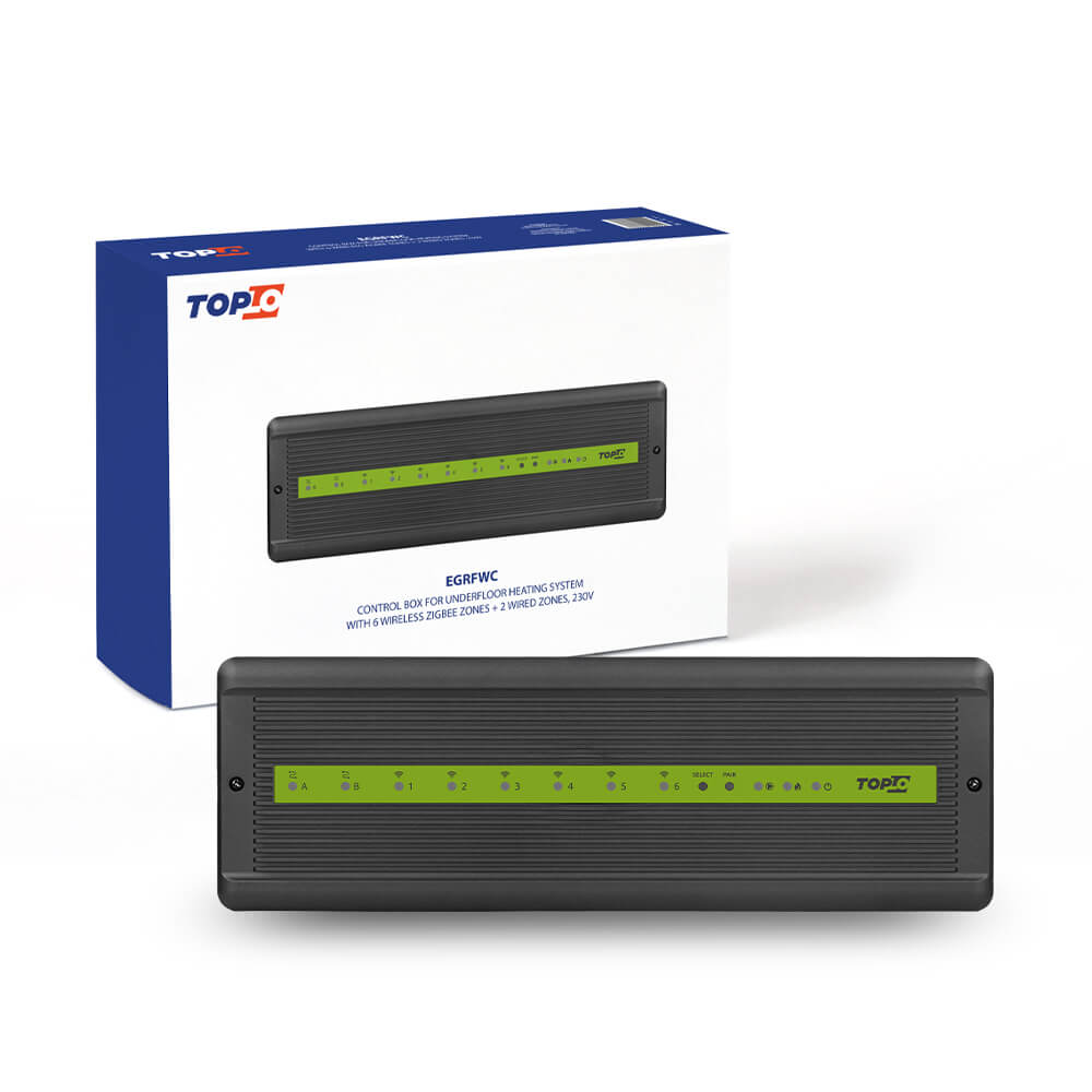 Control Box for Underfloor Heating Systems with 6 wireless ZigBee zones + 2 wired zones, 230V